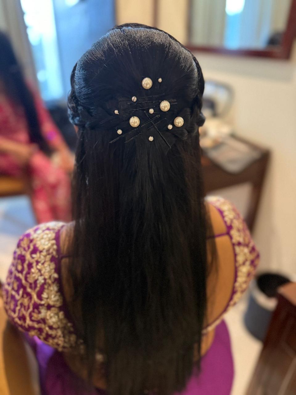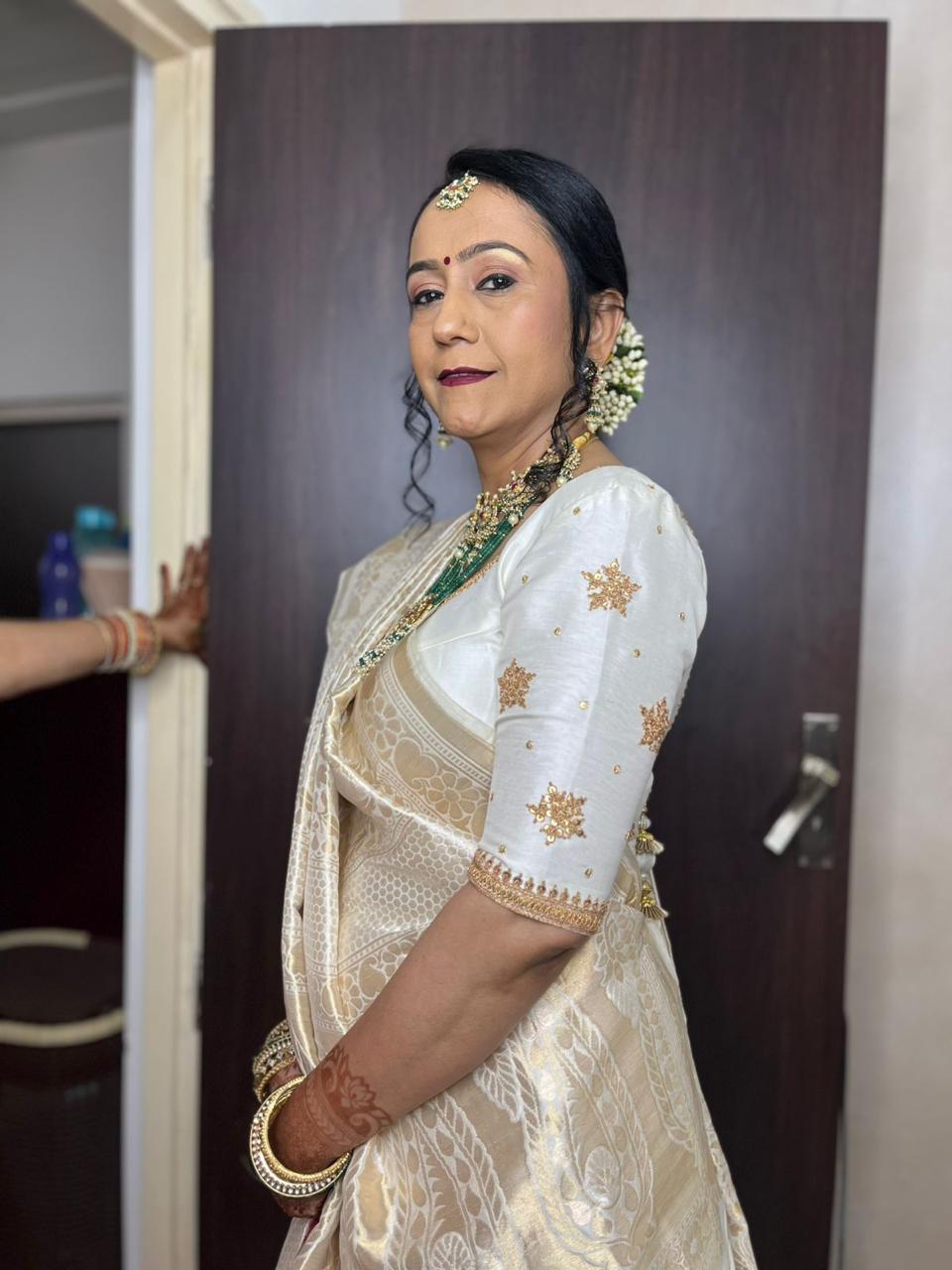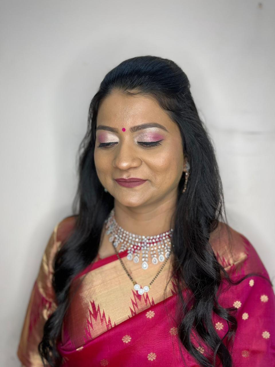 Timeless makeup artistry, bespoke hairstyling, and graceful draping crafted for brides who love soft, romantic finishes.